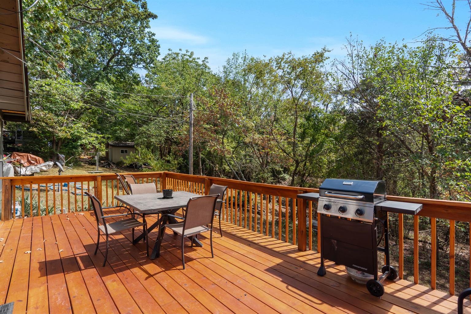 Outdoor Sanctuary: Enjoy the fresh Ozark air and beautiful surroundings from the spacious deck and back yard.